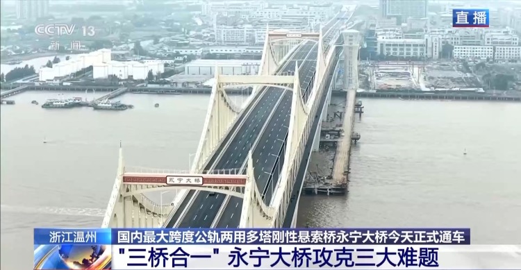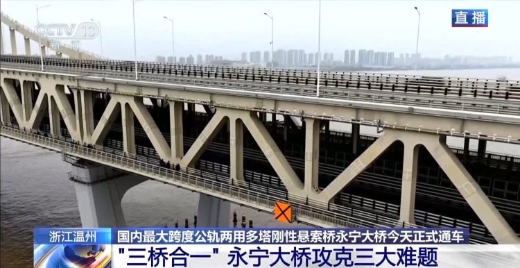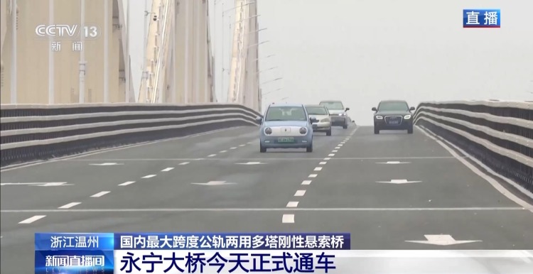 今天(6日)上午股天下配资官网,国内最大跨度的公轨两用多塔刚性悬索桥——浙江温州瑞安永宁大桥正式通车,这座桥有什么特色、给当地带来了哪些变化?一起来看。